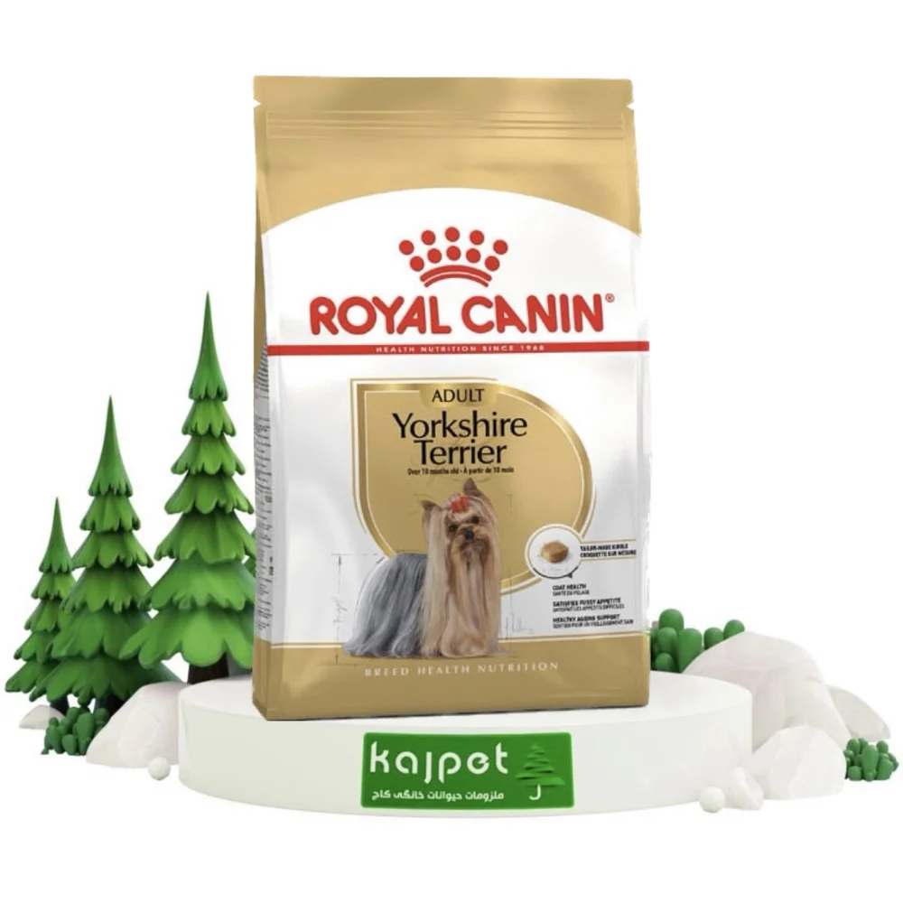 غذای خشک یورکشایر ادالت رویال کنین در بسته بندی های 1.5 کیلوگرمی برای سگ های با نژاد یورک شایر تریر بالغ عرضه می شود.